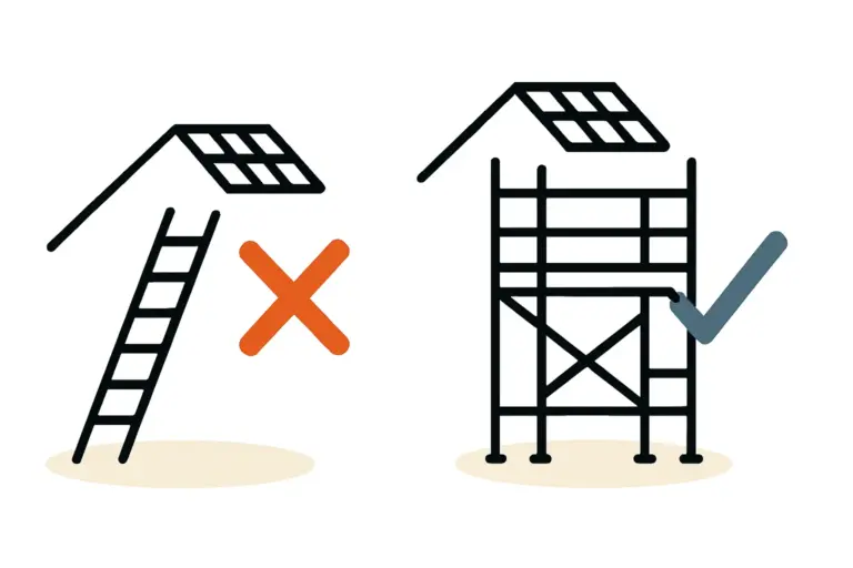 Die sichere Aufstellung von Leitern und Gerüsten für die PV-Montage: Typische Fehler und Prüfkriterien
