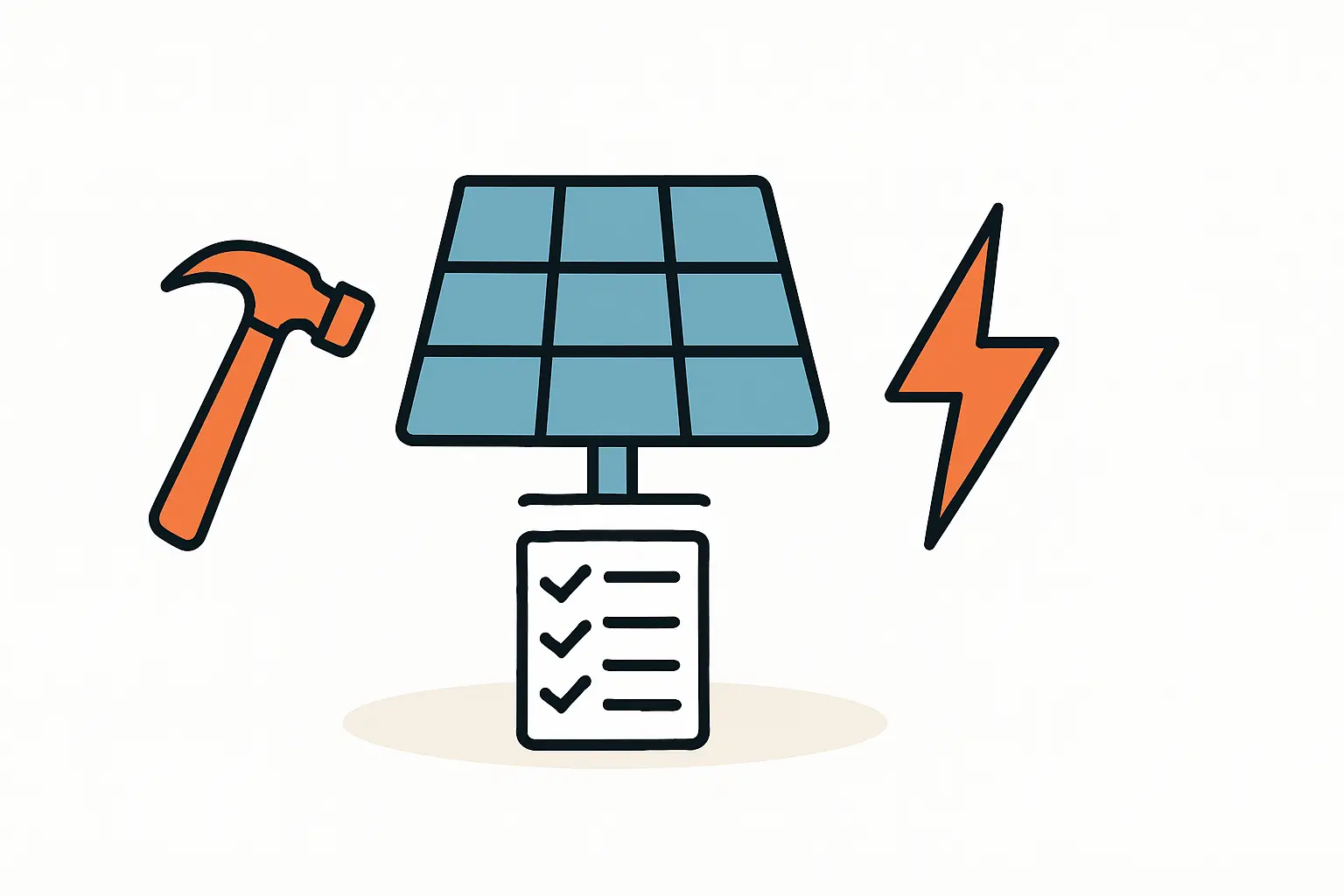Nach Abschluss der Arbeiten ist eine professionelle Überprüfung empfehlenswert, die Teil der regulären Wartung der PV-Anlage sein kann, um sicherzustellen, dass keine verdeckten Schäden entstanden sind.