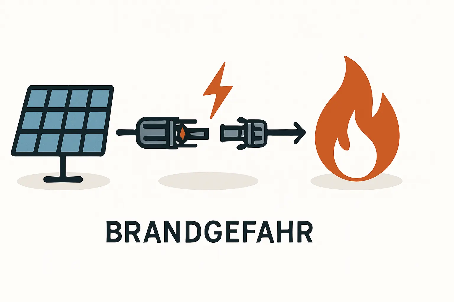 Lichtbogen: Im Extremfall kann der Strom an der lockeren Stelle die Luft „überspringen“. Dabei entsteht ein sogenannter Lichtbogen – ein extrem heißes Plasma, das Temperaturen von mehreren tausend Grad Celsius erreichen kann. Ein solcher Lichtbogen entzündet umliegende Materialien sofort und ist eine der häufigsten Ursachen für Brände bei PV-Anlagen.