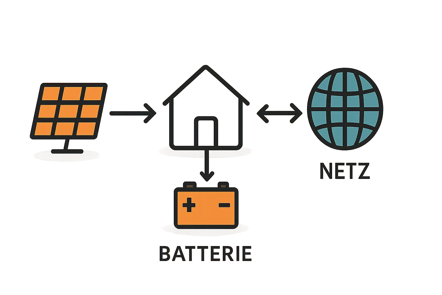 - Direkter Eigenverbrauch: Der erzeugte Solarstrom versorgt zuerst die laufenden Verbraucher im Haus.
