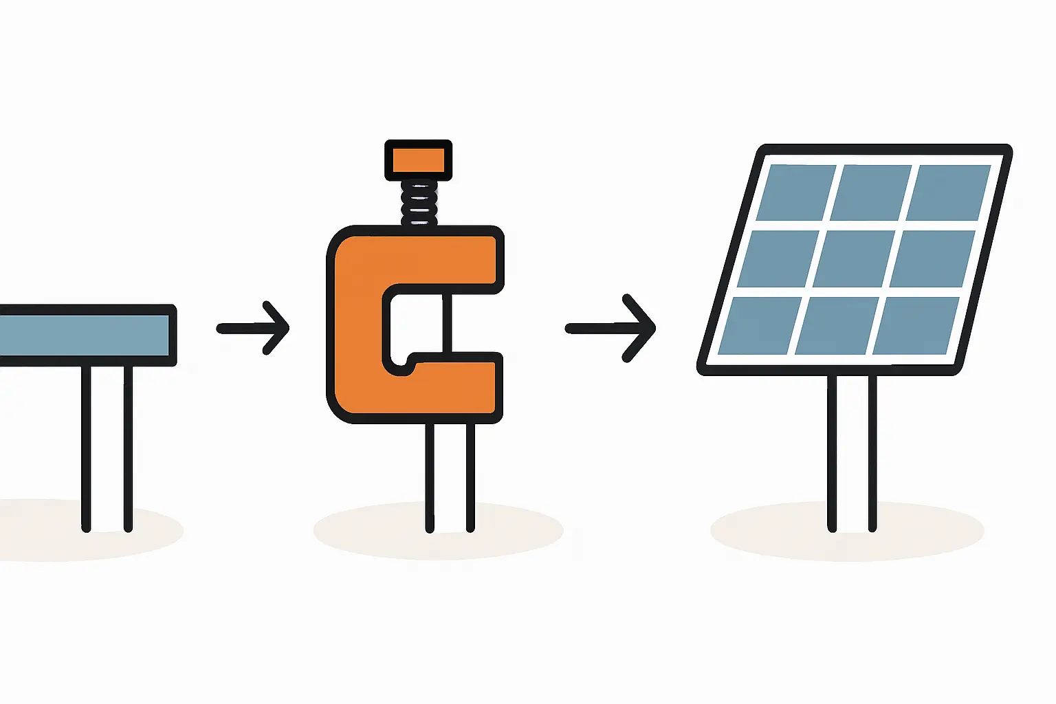Die Montage erfolgt über spezielle Klemmen, die direkt auf die Aluminium- oder Holzsparren der Unterkonstruktion geschraubt werden. Auf diesen Klemmen werden anschließend die Solarmodule befestigt.