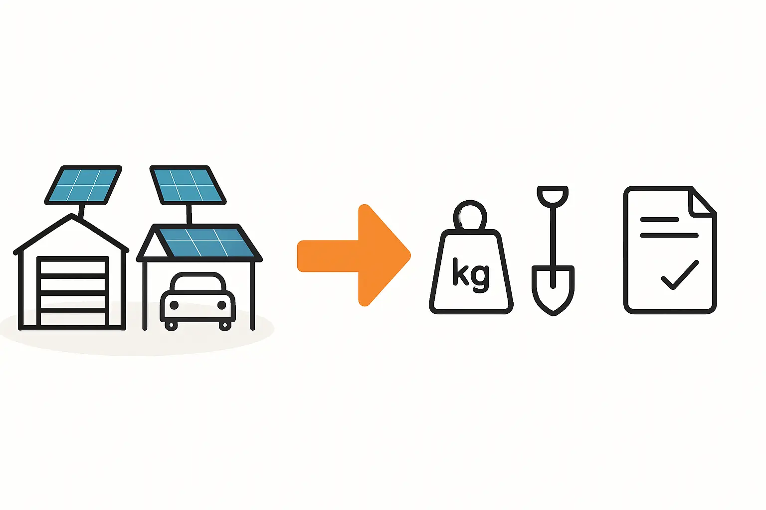 Ein einfaches Rechenbeispiel macht die Herausforderung deutlich: Bereits die Anlage selbst belastet das Dach mit rund 25 kg/m². Kommt im Winter eine schwere Schneedecke hinzu, kann die Gesamtlast die zulässige Grenze der Dachkonstruktion schnell überschreiten. Bei Leichtbau-Carports oder Gartenhäusern ist die Situation noch kritischer.