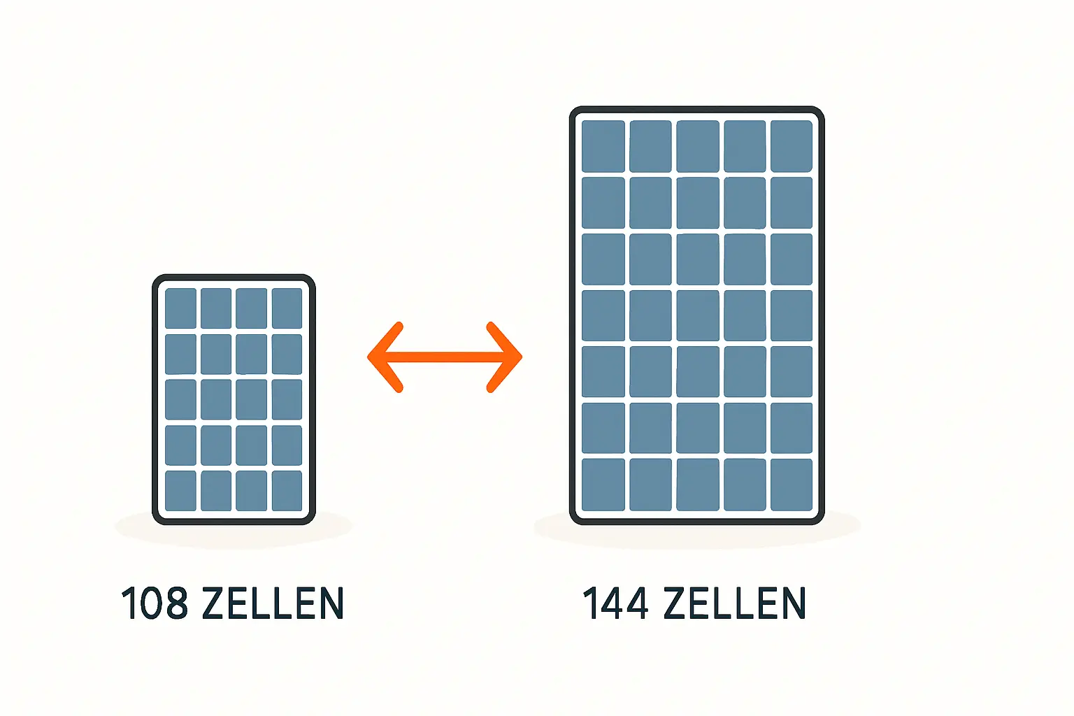 Die Anzahl der Zellen in einem Modul ist ein direkter Indikator für seine Größe und Leistung. Moderne Module verwenden fast ausschließlich Halbzellen, weshalb Bezeichnungen wie „108-Zeller“ eigentlich „108 Halbzellen“ meinen.