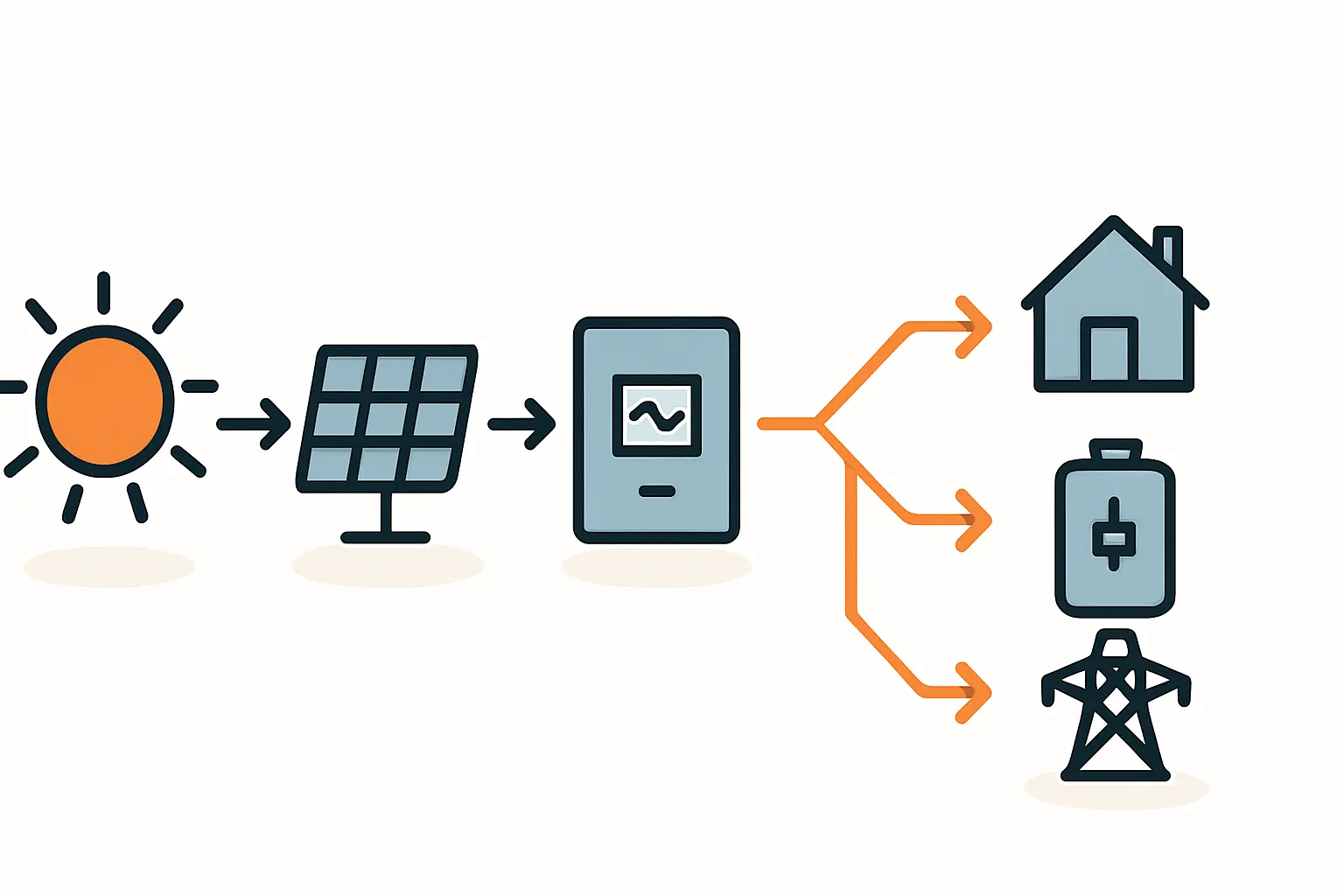 Ein typisches Szenario: An einem sonnigen Mittag produziert Ihre Anlage auf dem Dach mehr Strom, als Sie gerade verbrauchen. Der Wechselrichter erkennt dies und leitet den überschüssigen Strom intelligent weiter – entweder in einen Stromspeicher oder ins öffentliche Netz.