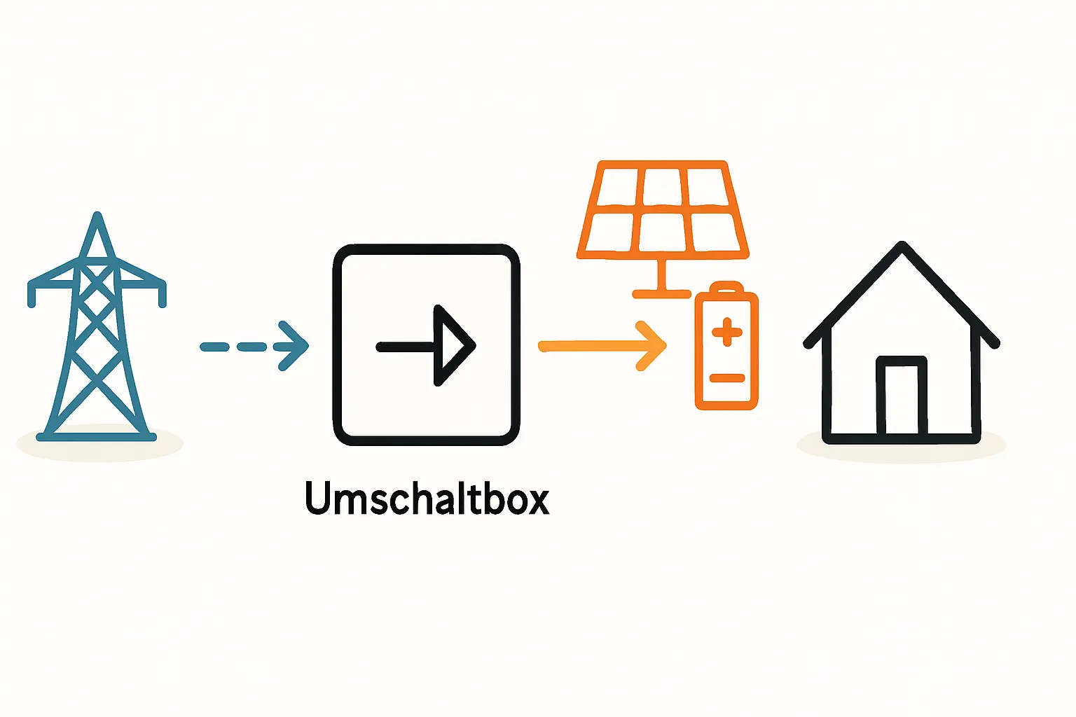 Eine Umschaltbox ist ein elektromechanisches oder elektronisches Gerät, das im Falle eines Stromausfalls Ihr Hausnetz sicher vom öffentlichen Stromnetz trennt. Gleichzeitig schaltet sie die Stromversorgung auf Ihre PV-Anlage und den dazugehörigen Batteriespeicher um. Sie fungiert als intelligenter Weichensteller zwischen zwei Energiequellen: dem öffentlichen Netz und Ihrem privaten Inselnetz.