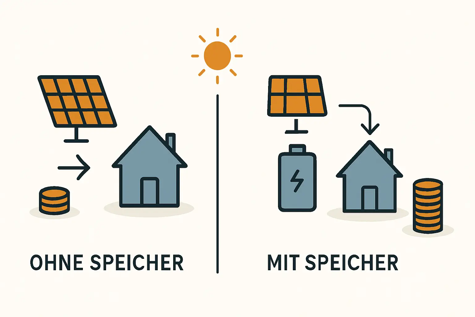Ohne Speicher wird der überschüssige Strom, den Sie mittags nicht verbrauchen, unvergütet ins öffentliche Netz eingespeist. Studien der HTW Berlin zeigen, dass ein typischer Haushalt ohne Speicher oft nur 50 bis 60 % des selbst erzeugten Solarstroms direkt nutzen kann. Der Rest fließt dem Netz zu, ohne dass Sie davon profitieren.